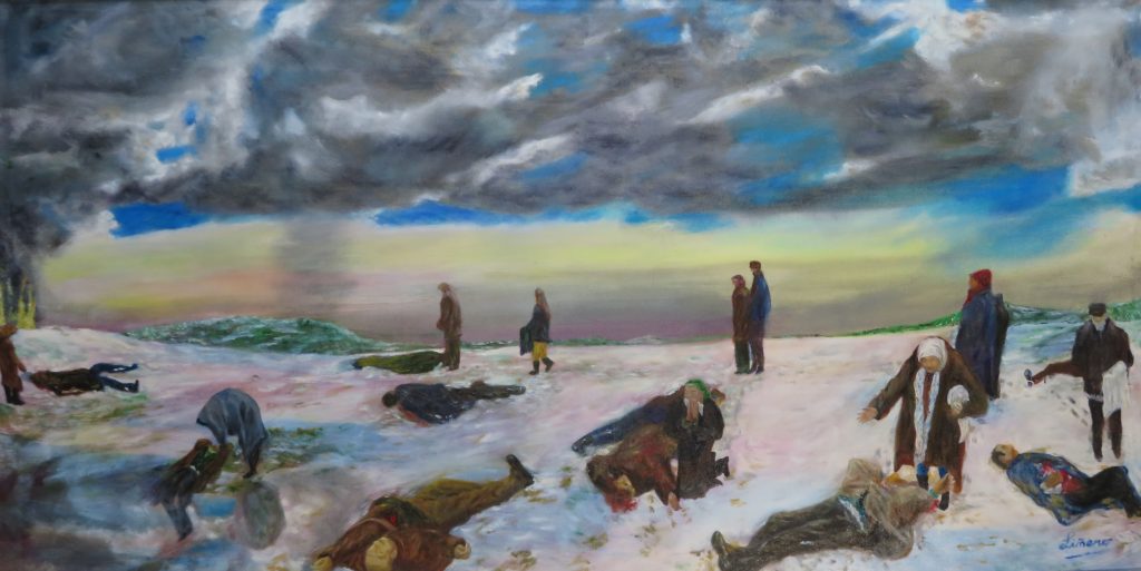 Óleo en lienzo Santander 2012 – VII. medidas 112 X 65 X 5 cm Este trabajo está tomada de documentos de las guerras donde la sinrazón y el desprecio al conquistado con el afán de poder dominar y aprovecharse sin ningún escrúpulo . E , querido reflejar una escena donde la muerte el frio el fuego , humo de la […]