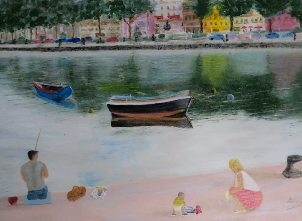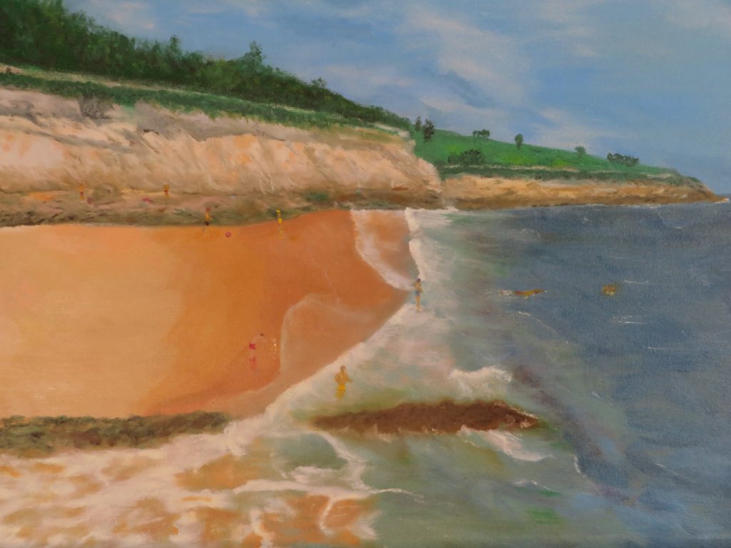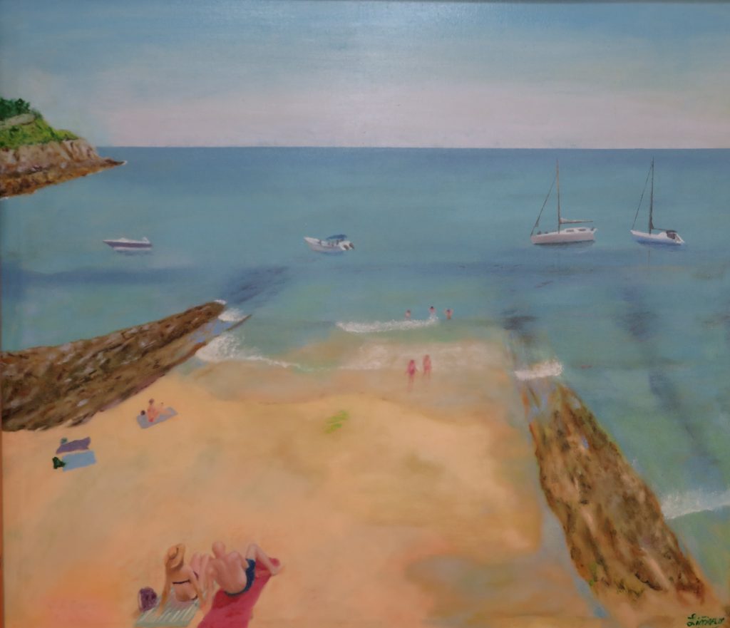 Santander óleo sobre lienzo medidas 86 X 76 X 5 cm Esta playa está y no está y es a consecuencia de las mareas que se llevan y traen la arena , según la fuerza de las olas y coeficiente . Está al final de La Segunda de El Sardinero en Santander Cantabria .