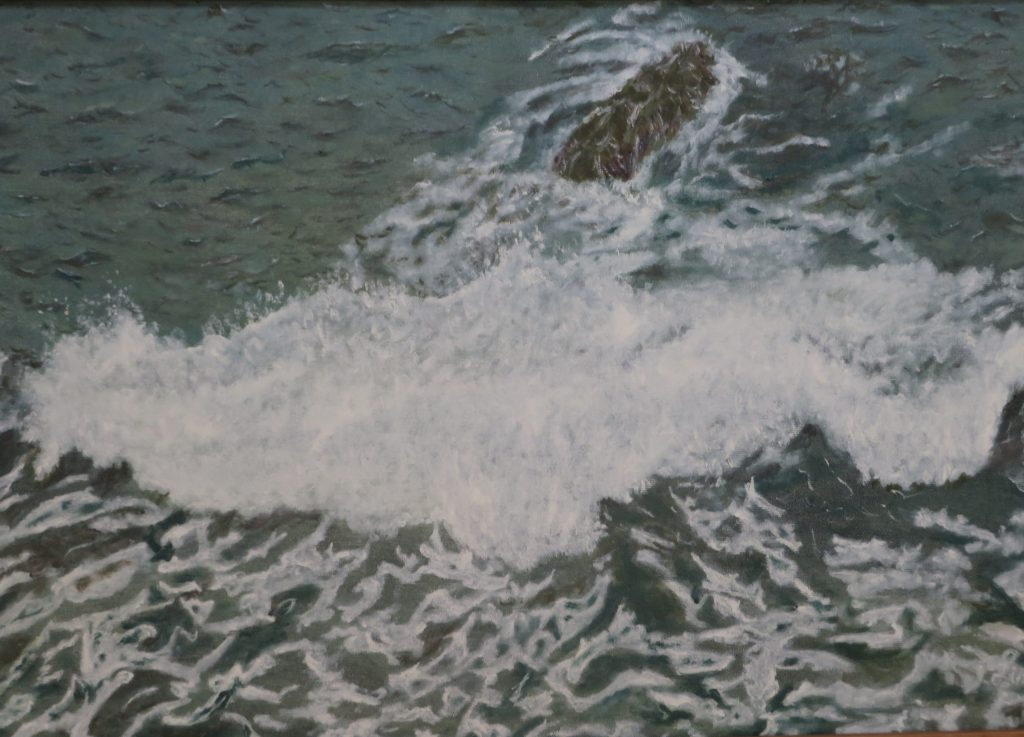 Santander 2020 – VII – óleo sobre lienzo 84 X 54 cm La ola … Parece incansable , a veces golpea suave , otras fuente , mas fuerte disipándose en la orilla , temor de todo marino empujándole sus naves hacia otros mares, juego de surfistas inspiración de muchos pintores , uno de ellos soy yo .