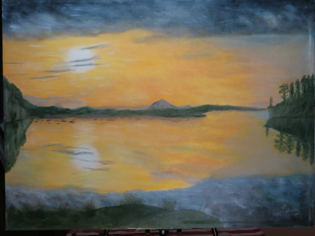 Cantabria , óleo en lienzo medidas 100 X 49 cm s m Atardecer en las marismas de Oyambre zona protegida . Todo el año está en su esplendor no importa el tiempo que haga siempre tiene su encanto . sus reflejos son un esplendor de luz y color .